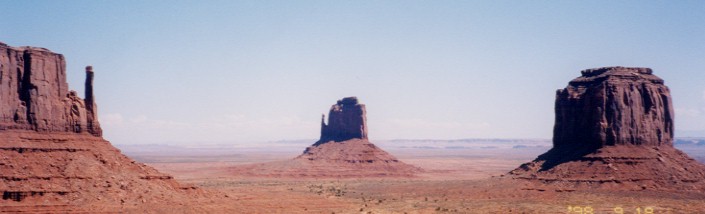 懐かしの西部劇の舞台へ ![]() アメリカにはただひたすら走るだけの道が沢山ある。中でもかって数多くの西部劇の舞台となって映画に登場したこのモニュメントヴァレイへの道は日本での道路のイメージを大きく超えている。